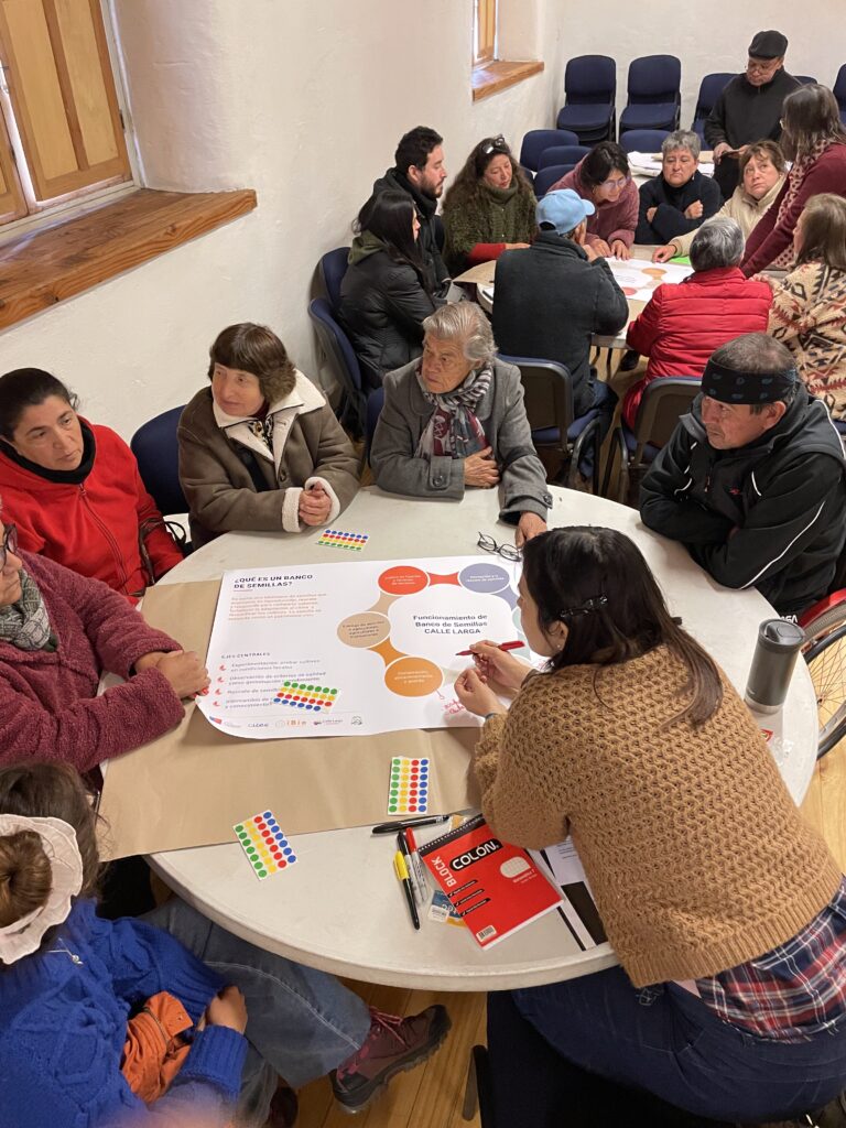 El de 9 de agosto 2026 en el Centro Cultural Pedro Aguirre Cerda realizamos una jornada que combinó la proyección del microdocumental con un taller de conversación entre usuarios y usuarias del programa Prodesal, investigadores de los centros Milenio CITEC e iBio y representantes de otras instituciones aliadas. El foco estuvo socializar el proceso colaborativo para desarrollar un Banco de Semillas de Calle Larga, impulsado por agricultores y profesionales de Prodesal con el apoyo de equipos de investigación interdisciplinario.