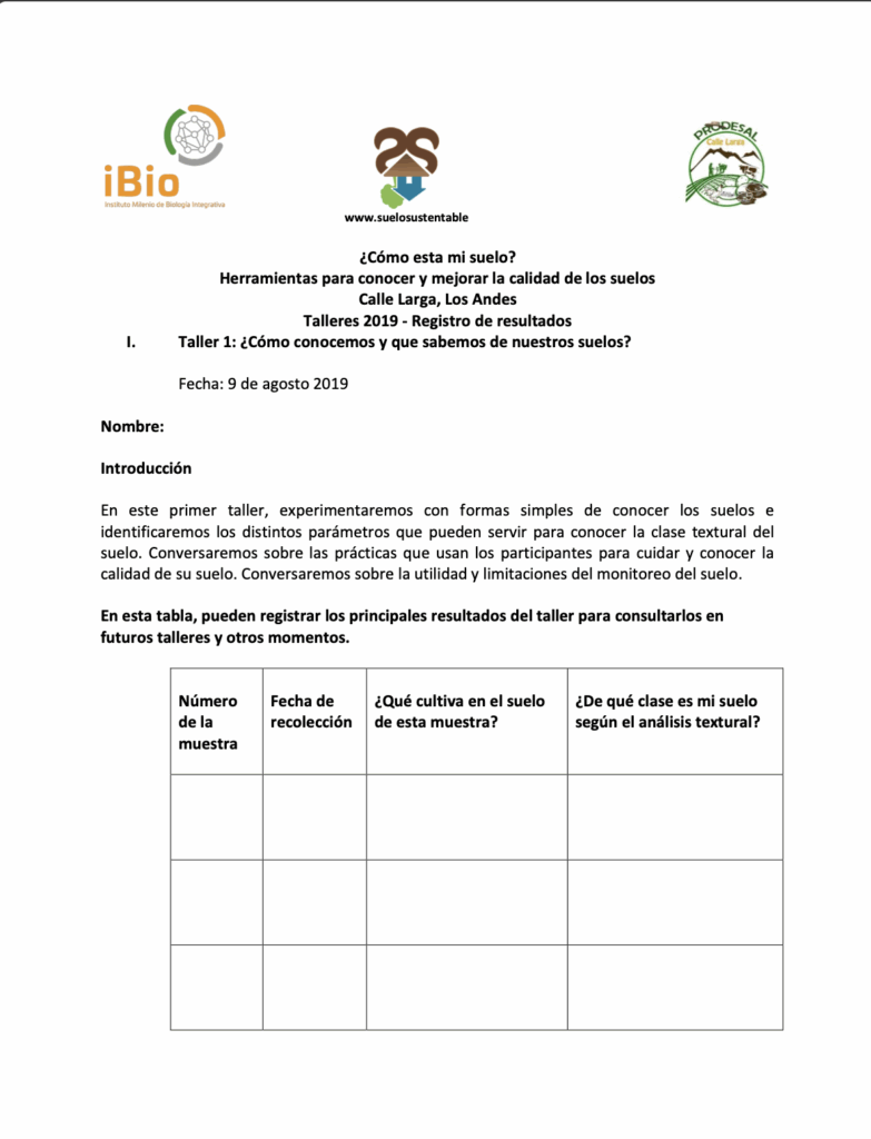 En este taller también conversamos sobre las prácticas de lo usuarios para relacionarse con , cuidar y conocer la calidad del suelo. Conversaremos sobre la utilidad y limitaciones del monitoreo del suelo. Previo a este taller, realizamos un piloto e hicimos visitas donde practicamos la toma y preparación de muestra para monitoreo en terreno.